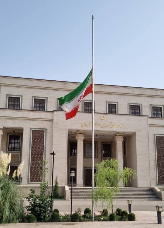 پرچم سفارت ایران در تاجیکستان به حالت نیمه برافراشته درآمد